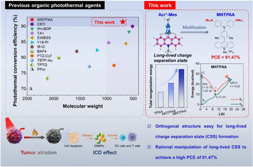 该研究不仅开发了一种具有超高光热转换效率的新型分子,更展示了一种“分子构象调控电荷分离,增强非辐射衰变”的通用设计策略,为开发下一代高效、安全、兼具免疫调节功能的光热治疗制剂开辟了新思路。