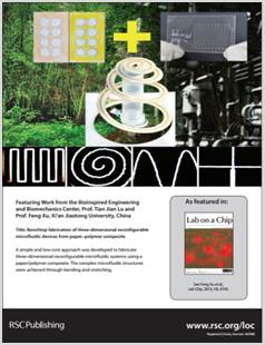 369. Hao Liu, Moxiao Li, Shaobao Liu, Pengpeng Jia, Xiaojin Guo, Shangsheng Feng, Tian Jian Lu, Huayuan Yang, Fei Li, Feng Xu, Spatially Modulated Stiffness on Hydrogel for Soft and Stretchable Integrated Electronics, Materials Horizons, 2019 Full Text